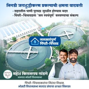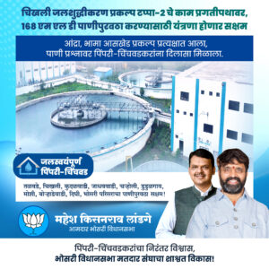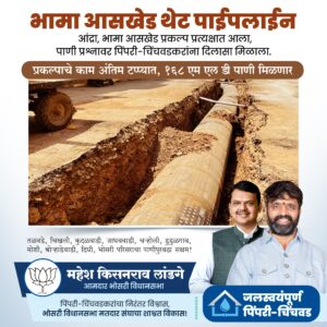 These efforts have led to a significant decrease in complaints related to water supply and quality. The Andra water supply project has been completed, and the Bhama-Askhed project is nearing completion. Pimpri Chinchwad aims to become a water-self-sufficient city. By securing additional water sources and improving infrastructure, the city can meet the growing demands of its residents and ensure a sustainable water supply for future generations. The people of Pimpri-Chinchwad are happy and grateful for Mahesh Dada’s work. They know that with enough water, they can build a brighter future for their city.